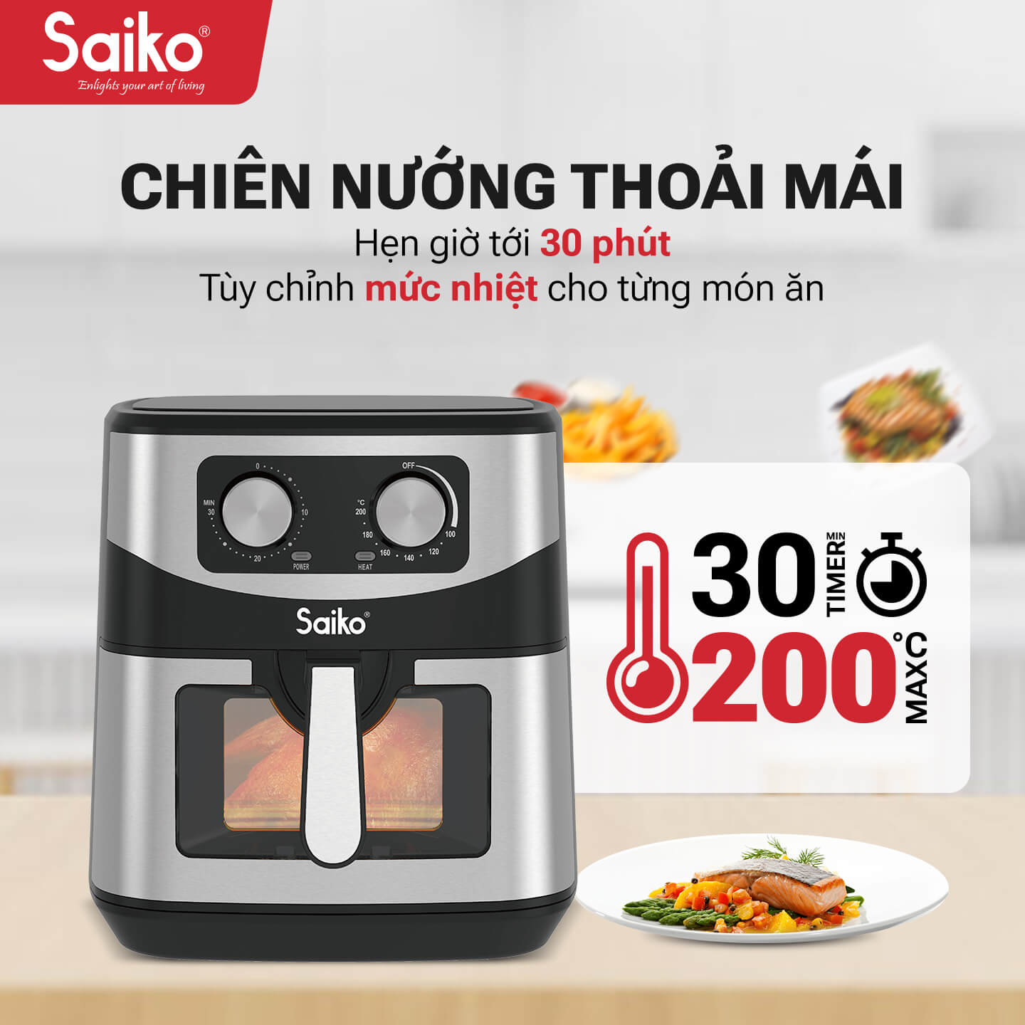 Với những tính năng vượt trội, Saiko FRY-P11 không chỉ giúp bạn chế biến các món ăn ngon miệng mà còn bảo vệ sức khỏe cả gia đình. Việc nấu nướng trở nên dễ dàng, nhanh chóng và tiện lợi hơn bao giờ hết. Hãy sở hữu ngay một chiếc nồi chiên không dầu Saiko FRY-P11 để nâng tầm bữa ăn hàng ngày và tận hưởng cuộc sống lành mạnh hơn!