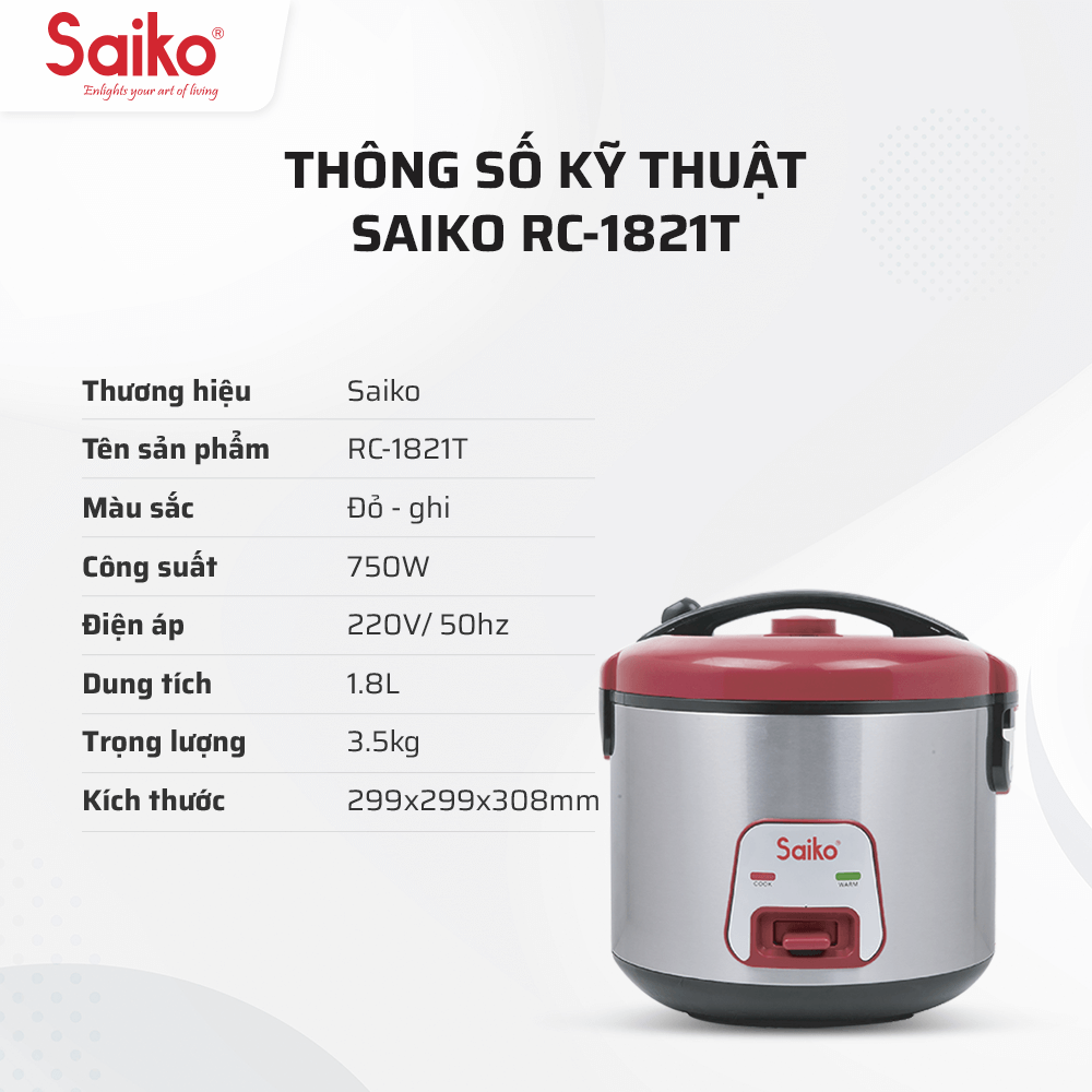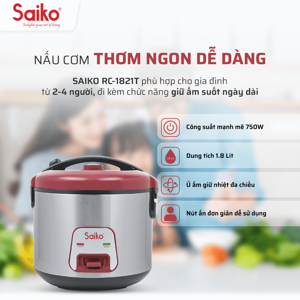 Những ưu điểm vượt trội của nồi cơm điện Saiko RC - 1821T
